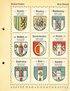 Städtewappen. (Serie - Klebebilder) Kaffee Hag. Bohnenkaffee. Das Blatt trägt den Titel: "Freistaat Württemberg Donaukreis". (Gestaltung: Otto Hupp). Fa. Kaffee Hag (Hrsg.), o.J. (ca. 1925). 1 Blatt. Ca. 20 x 18 cm; Abb. (9 Wappenbilder mit gezackten Rändern). Gutes Exemplar; altersbedingt leicht gebräunt. - 1. Seite des Blattes: Wappen; 2. Seite: etwas Text über die einzelnen Städte. // Wappen von : Münsingen; Neidlingen; Niederstotzingen; Owen; Ravensburg; Riedlingen; Saulgau; Scheer und Schelklingen. / Hermann Joseph Otto Hubert August Constantin Hupp (* 21. Mai 1859 in Düsseldorf; ? 31. Januar 1949 in Oberschleißheim) war ein deutscher Heraldiker, Schriftgrafiker, Kunstmaler, Sammler und Ziseleur. ... Durch seine Sammlungen alter Wappenbücher und Heraldischer Literatur perfektionierte er in den kommenden Jahren sein Handwerk. Er malte mehr als 6000 Wappen, und schrieb mehrere Bücher über Heraldik. Die Buchreihe Wappen und Siegel der deutschen Städte, Flecken und Dörfer wurde ab 1894 verlegt, jedoch konnte er von den ursprünglich geplanten 10 (bzw. 11) Bänden nur 5 fertigstellen. 3460 seiner Wappenbilder wurden als Sammelkarten der Firma Kaffee HAG in den Jahren 1913?1918 und 1926?1938 veröffentlicht. Insbesondere diese Sammelbilder trugen dazu bei, die Wappenkunst der Allgemeinheit näher zu bringen. ... Hupp dokumentierte nicht nur die bestehenden Wappen der Städte und Gemeinden, sondern zeichnete auch viele Entwürfe, die dann zu den Grundlagen der offiziellen Wappen wurden.