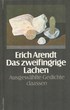 Das zweifringrige Lachen. Ausgewählte Gedichte 1921 - 1980. Hrsg. u. mit einem Nachwort von Gregor Laschen. (Düsseldorf), Claassen, (1981). 159 (1) S. 8vo, 21 cm. Illustr. OPp. Mit hs. WIDMUNG des Hrsg. für einen Uwe: "der olle Erich schaut uns - wohlwollend, denk ick, - zu: «In Kimmtiefe zitternd: vogelfüßiges Schweigen.» Herzl. Dein Gregor." - Erste Auflage dieser Ausgabe (Wilp.-Gühring² 83). - 70 Gedichte aus sechs Jahrzehnten mit bisher unveröffentl. Texten von 1978-1980. Lyrik betrachtete Erich Arendt (1903-1984) als "Geschichtsschreibung von der Leidseite, der Erleidensseite her". Der in die Schweiz, nach Spanien u. schließlich nach Kolumbien emigrierte Dichter u. Neruda-Übersetzer lebte seit 1950 in der DDR. - Ecken schwach bestoßen, sonst gutes Exemplar.