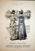 Anzug mit ?berkleid. Anzug mit Mieder-?berkleid. Anzug mit schr?g schliessender Taille. Blatt: 763 aus: Illustrirte Frauen-Zeitung: Ausgabe der Modenwelt mit Unterhaltungsblatt Berlin; Wien; Paris / Leipzig, Verlag Lipperheide / Druck: Carl Marquart, 1888. Modegrafik / Fashion Print original Xylographie altkoloriert, ca. 39 x 27 cm |
