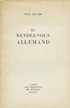 Au Rendez-Vous Allemand. Paris, Éditions de Minuit, 1944. 59 + 3 S. OBrosch., Abbildung EA. In franz. Sprache. Mit dem Frontispiz nach einer Radierung von Picasso. - Angestaubt, leichte Lichtschatten, leichte Gbrsp. - Éluard, (d.i. Eugène-Émile-Paul Grindel) (1895 - 1952), besuchte nach der staatlichen Volksschule die Oberschule, die er als mittelmäßiger Schüler mit 16 Jahren abschloss. Von Kindheit an war Éluard kränklich, und 1912 wurde bei ihm Tuberkulose festgestellt. Bei einem Kuraufenthalt in den Schweizer Bergen lernte er seine spätere Frau Gala kennen, die er 1917 heiratete und auf die sich viele seiner Gedichte beziehen. Ab 1913 veröffentlichte Éluard - noch im Sanatorium in Davos - erste Gedichte. Seine Familie unterstützte ihn dabei finanziell. Nach seiner Genesung wurde er 1914 zur Armee eingezogen. Den Krieg verbrachte er jedoch überwiegend krank hinter der Front im Lazarett. Über Jean Paulhan stieß er 1919 zu den Künstlern um André Breton. Er veröffentlichte weitere Gedichte und war Mitarbeiter bei Zeitschriften wie ?Proverbe' und ?Littérature'. Seinen Lebensunterhalt bestritt er jedoch bis zum Tod seines Vaters als Makler in dessen Geschäft. Sein Erbe ermöglichte es ihm, fortan als freier Schriftsteller zu arbeiten. 1921 besuchte Éluard Max Ernst in Köln, mit dem er in der Folgezeit auch zusammenarbeitete. 1924 wurde in Paris von Breton das Manifest des Surrealismus veröffentlicht und löste den Dadaismus ab. Éluard nahm diesen Richtungswechsel in seine Dichtung auf und verfasste bis 1928 seine wichtigsten Werke. 1927 trat er zusammen mit Louis Aragon, André Breton, Benjamin Péret und Pierre Unik der Kommunistischen Partei Frankreichs (KPF), von der er jedoch bereits 1933 wieder ausgeschlossen wurde. Zwei Jahre später lernte er den Maler Salvador Dalí kennen; seinetwegen ließ sich seine Frau Gala 1932 von ihm scheiden. Doch er schrieb ihr bis zum Ende seines Lebens Liebesbriefe. 1930 lernte er Maria Benz, genannt ?Nusch', kennen, eine deutschstämmige Schauspielerin, die er 1934 heiratete. Vier Jahre später, 1938, organisierte er zusammen mit André Breton in Paris die Ausstellung "Exposition Internationale du Surréalisme'. 1938 wurde er aus der surrealistischen Gruppe um Breton ausgeschlossen. Nach dem Einmarsch der Wehrmacht ging er in den Untergrund und engagierte sich in der Résistance. 1942 trat er wieder der KPF bei und wurde zu einer Art sozialistischem Dichter-Star. Er starb 1952 an einem Herzinfakt. (Zitat)