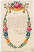 Freundschaftsbrief in französischer Sprache mit reicher farbiger floraler Verzierung umgeben. [ca. 1820]. Manuskript. 20 x 12, 5 cm. Doppelbl. Faltspur in der vertikalen Mittelachse. Beiliegend: Kolor. Brustbild einer jungen Dame. Lithogr. 18 x 12 cm. Rückseitig hs. Brief aus Wien vom 22. Dezember 1896.