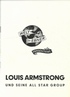 Welt Ebner präsentiert Louis Armstrong und seine All Star Group (Programmheft für die Deutschland Tour 1956) Frankfurt: C. Ebner. 1956. OBroschur, gutes Ex. Abb. v. Louis Armstrong, Arvell Shaw, Trummy Young, Velma Middleton, Barrett Deems, Barney Bigard, Billy Kyle, All Stars, Clara Gunderloh. 10 S. 8° ----------- Beiliegt Zeitungsausschnitt über das Storyville in Frankfurt mit 2 Abb, und kleiner Werbeflyer der veröffentlichten Langspielplatten bei Brunswick -------- Storyville: Frankfurter Jazzclub seit 1951 von Carlo Bohländer eröffnet ----- SELTEN