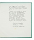 ?Gustinus Ambrosi. Der Gesang an meine Werkstatt?. Eigenh. Manuskript m. Unterschrift. Wien, 1921. Gr.-8°. 12 einseitig beschriebene Bll., Grüner OLwd.-Bd. m. goldgepr. Deckeltitel. Unveröffentlichtes, auf Pergaminpapier geschriebenes Huldigungsgedicht an seine Werkstatt. 1913 erhielt der seit dem siebten Lebensjahr infolge einer Meningitis völlig taube Ambrosi nach Fürsprache des k. u. k. Statthalters der Steiermark, Graf Manfred von Clary-Aldringen, von Kaiser Franz Josef I. ein Staatsatelier auf Lebenszeit. - Am hinteren Vorsatzblatt ein längerer, handschriftlicher Eintrag des Künstlers: ?Dieser Gesang ist der erste Gesang aus dem bisher unveröffentlichten Buche: ?Die Gesänge zwischen Steinen? - und ist im Jahre 1921 entstanden. Ich habe diesen Gesang zur Weihe des siebzigsten Geburtstages Rudolf Hans Bartschs, diesem mit herzlichen Wünschen für ferneres Wohlergehen und gute Arbeit eingesendet [...]?. - Einband min. berieben. Etw. stockfleckig.