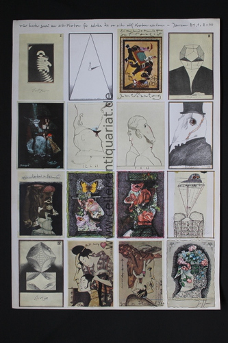 Vier hoch zwei zu sich karten für solche die an sich auf Karten warten - Janssen 21.1.2+70 Hamburg, Postkartenbogen. Christians, 1972. Maße: 64 cm x 46 cm, (unwesentliche Knitterspuren)---- unten recht original von Horst Janssen signiert -.
