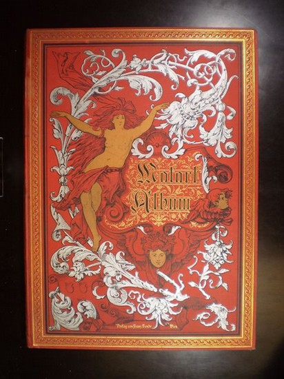 Makart-Album Wien, Verlag Franz Bondy, um 1890, Auflage: 2. Leinen, gebunden; roter, schwarz/braun/gold/silber geprägter, illustrierter Einband, Goldschnitt / Anz. Seiten: unpaginiert / 30 x 41 cm / mit 64 Schwarzweissabbildungen auf teils doppelseitigen Tafeln / Zustand: gut, leichte Gebrauchsspuren; Einband leicht berieben und etwas fleckig, 2 Ecken leicht beschabt, 3 Ecken und Kapitale geringfügig bestossen, Papier etwas gebräunt und teilweise leicht bis mässig stockfleckig.