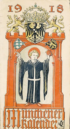 Münchener Kalender. Konvolut von von 12 Ausgaben aus dem Zeitraum 1901-1918. München, Regensburg: Verlagsanstalt vormals G. J. Manz, 1901-1918. 1901-1903, 1905-1907, 1909, 1911-1912, 1915, 1916, 1918. Mit zahlr. farb. Abb. Originalbroschur. Sehr unterschiedliche Erhaltung. Bis 1907 Einbände berieben und bestossen, papierbedingt gebräunt. Die anderen teils sehr gut. - Otto Hupp war Heraldiker, Schriftgrafiker, Kunstmaler und Ziseleur. Einer seiner wichtigsten Wappenentwürfe war das bayerische Staatswappen von 1923 - allerdings wurde es nach dem Zweiten Weltkrieg durch eine modernisierte Version ersetzt. Auch andere Landeswappen stammen von seiner Hand z.B. Oberschlesien. Eine weitere heraldische Publikation Otto Hupps waren die Münchner Kalender, von denen 51 Ausgaben in den Jahren 1885-1936 (mit Ausnahme von 1933) erschienen. Die Kalender der Jahre 1885 bis 1894 zeigten Monatswappen mit den Tierkreiszeichen. Ab 1895 konnte sich Otto Hupp mit seiner Idee durchsetzen, anstatt der "abgenutzten Monatszeichen" Wappen der deutschen Fürstenhäuser und in der Folge alljährlich ein doppelblattgroßes Wappen eines deutschen Staates und anschließend jeweils zwölf Wappen großer Adelsgeschlechter zu bringen.