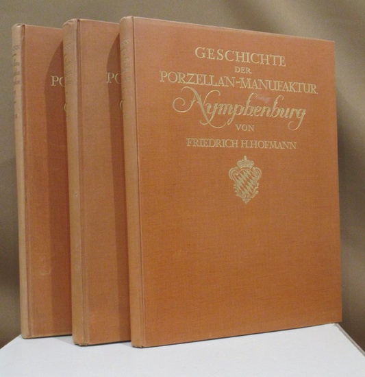 Geschichte der Porzellan-Manufaktur Nymphenburg. 3 Bände. Leipzig, Hiersemann 1923. 1923. gr.-4°, XIV, 738 S. (durchgehend paginiert) mit ca. 450 Textabbildungen, 12 ein- u. 12 mehrfarbigen montierten Tafeln und 2 Markentafeln, Orig.-Leinen. Die beiden ersten Bände in 2. Auflage, der 3. Band in erster Ausgabe.- Band 1. Wirtschaftsgeschichte und Organisation; Band 2. Werkbetrieb und Personal; Band 3. Produktion und Verschleiss.- Grundlegendes Werk.- Sehr gutes Exemplar.