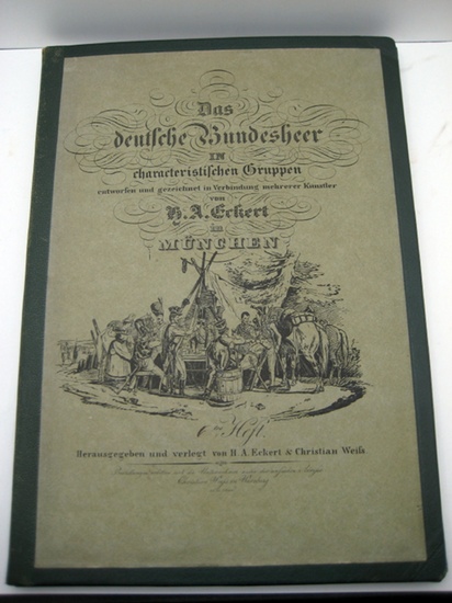 Das deutsche Bundesheer in characteristischen Gruppen entworfen und gezeichnet in Verbindung mehrerer Künstler. 6. Heft: [Die königliche Württembergische Armee]. München u. Würzburg Eckert & Weiß 1835-40. Fol. 30 altkolorierte Lithographien. Neue Leinenband -Mappe. Lipperheide II, 2120. Monumentales Uniformwerk der beiden Uniformmaler. Das Gesamtwerk allein für das deutsche Bundesheer umfaßt 384 Tafeln. Bis ins Detail genaue Wiedergaben der eleganten Uniformen sind in bezaubernder biedermeierlichen Staffage dargestellt. Vorliegt die Vorzugsausgabe mit montierten Tafeln (außer Tafn. 286, 309). - Nur vereinzelt Stockflecken. Gutes Exemplar.