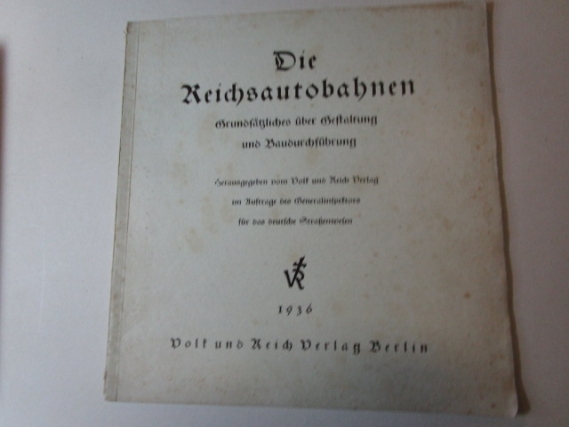 Die Reichsautobahnen Grundsätzliches über Gestaltung und Baudurchführung Berlin, Volk und Reich, 1936. 32 Seiten 8°, kartoniert. Einband stockfleckig, leichte Gebrauchsspuren, sonst gut.