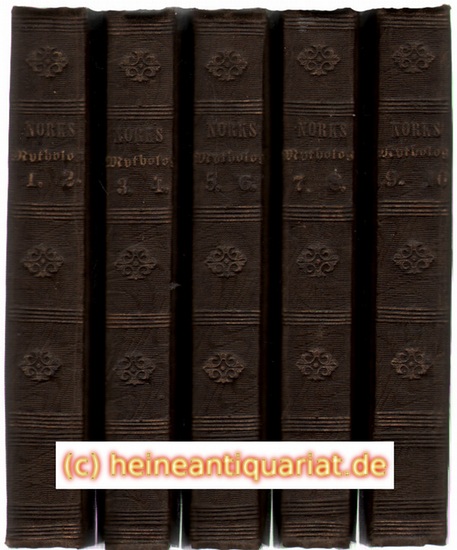Populäre Mythologie oder Götterlehre aller Völker. In zehn Theilen, mit einer Menge von Abbildungen. Herausgegeben von der "Gesellschaft zur Verbreitung guter und wohlfeiler Bücher". 10 in 5 Bänden. [ alles ]. Stuttgart, Verlag von Scheible, Rieger & Sattler, 1845. (13,3 X 9,5 cm); 12°; 195, 207, 186 Seiten,1 Blatt; 162 Seiten, 1 Blatt, 194 Seiten, 1 Blatt, 165 Seiten, 1 Blatt und 210 Seiten, 1 Blatt, 1 Blatt,139 Seiten, 1 Blatt, 167 Seiten, 212 Seiten; Leinwandbände der Zeit. Mit 12 mehrfach gefalteten Tafeln, diese teils mit Knickspuren. Stellenweise stockfleckig, besonders die Tafeln. Einige Tafeln mit kleinen Einrissen an den Stegen. Kanten und Stege sind bestossen. Einbände etwas berieben.