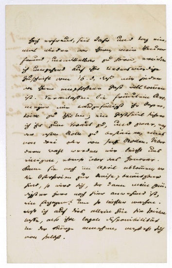 Eigenh. Brief mit U. München, 19. I. 1852. 1? SS. Gr.-8vo. An den Sänger Ludwig Cramolini (1805-1884): "Hoch erfreut, seit Jahr und Tag einmal wieder von Ihnen mein theurer Freund, unmittelbar zu hören, erwidere ich umgehend auf Ihre liebenswürdige Zuschrift vom 16. d. daß mir jeder von Ihnen empfohlene Gast willkommen ist. Veranlassen Sie Fräulein Kromeyer mir baldgefälligst ihr Repertoire zu schicken; ein Gastspiel sichere ich ihr zum Voraus zu, und zwar, nach der ersten Rolle zu bestimmen eine von drei oder von sechs Rollen. Über deren Wahl werden wir leicht uns einigen, ebenso über das Honorar [...] Sie wissen, wie es in einem Komödienhause zugeht, obendrein wenn drei Gäste dem Hausherrn den Kopf warm machen. So brauch' ich denn die Kürze meiner Antwort nicht zu entschuldigen [...]". - Franz von Dingelstedt war von 1851 bis 1857 Intendant am Hoftheater in München. - Auf Briefpapier mit gepr. Vignette.