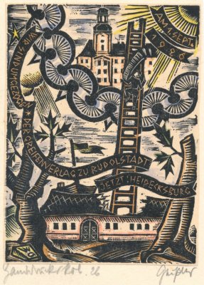 Sammlung von für den Greifenverlag. Kl.-8°. [Rudolstadt], Greifenverlag, [1923]-1926. 14 meist sign. Orig.-Holzschnitten. 1. Orig.-Holzschnitt für den Vorderdeckel zu E. L. Schellenberg "Die Bekehrung" [1923]. - Im Stock monogrammiert. Auf Chinapapier. Stockig. - 2.-3. Neujahrswünsche des Verlags an seine Mitarbeiter und Freunde. Zweifarbiger Orig.-Holzschnitt. - Ein Exemplar signiert. - 4.-11. Umzugsmeldung des Verlags von 1926. Orig.-Holzschnitt. - Alle signiert und datiert 26. Ein Blatt als Handabzug bezeichnet und handkoloriert. - 12. Dankeskarte für die Mitarbeiter des Greifenkalenders [um 1928]. Signierter Orig.-Holzschnitt. - 13. Ein Gutes Neues Jahr +++ Der Greifenverlag zu Rudolstadt. Signierte Orig.-Holzschnitte auf Bütten. - 14. Neujahr 1925. Den Segen des Schwarzen Greifen über allen Mitarbeitern und Freunden. Klappkarte auf Bütten mit 1 sign. Orig.-Farbholzschnitt. - Dazu: 3 Einladungskarten zu einer Ausstellung von Geissler in Rudolstadt 1955 mit Holzschnitt, 2 passende Versandumschläge mit Holzschnitt, 2 Einladungseintrittskarten mit Holzschnitt, 1 Postkarte zur Ausstellung mit Holzschnitt sowie 4 Einladungskarten mit Holzschnitt zu der 1957 wiederholten Ausstellung in Rudolstadt.