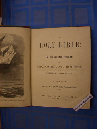 The Holy Bible : containing the Old and New Testaments, with Explanatory Notes, References, and a condensed concordance. Cassells Illustrated Family Bible. Holy Bible Vol. I. London and New York : Casell Petter [1870]. 400 Seiten. 33*25,5 cm. OHalblederband. Ecken und Kanten deutlich bestossen, Rücken mit Einrissen und kleinen Fehlstelle, Einband berieben, insgesamt nachgedunkelt und leicht stockfleckig, alle Kupferstiche vorhanden, sonst gut. S01-5 Wichtiger Hinweis: Aufgrund der EPR-Regelung zur Zeit KEIN Versand in EU-Länder. Due to EPR, there is currently no delivery to EU-countries.