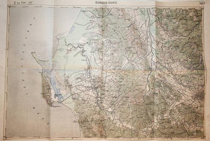 Durazzo (Durz) -Land: ALBANIEN (= Specialkarte der ?sterreichisch-Ungarischen Monarchie - 1:75 000 Zone 40, Colonne XXI [Band: 7463]) Wien, Milit?rgeographisches Institut, um 1915. Formatangabe ca 50 x 37 cm, gefaltet zu 8 Segmenten, Ausgabe: mehrf?rbig ; Zustand: gut. Spezialkarte ?sterreich-Ungarn <1:75000>.