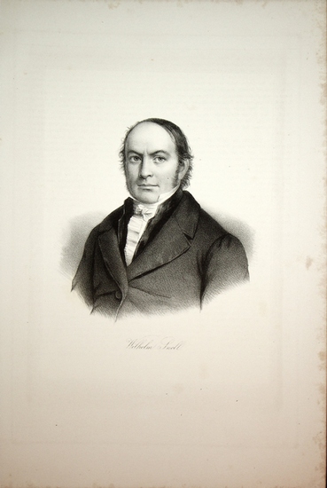 SNELL, Wilhelm Snell (1789-1851) deutscher Jurist, Politiker im Schweizer Exil ca. 1860. Portrait / Portr?t, Lithographie, Auf Tr?gerblatt montiert mit Stockflecken auf dem Tr?gerblatt, Tr?gerblatt ca.: 33,5 x 22,5 cm.