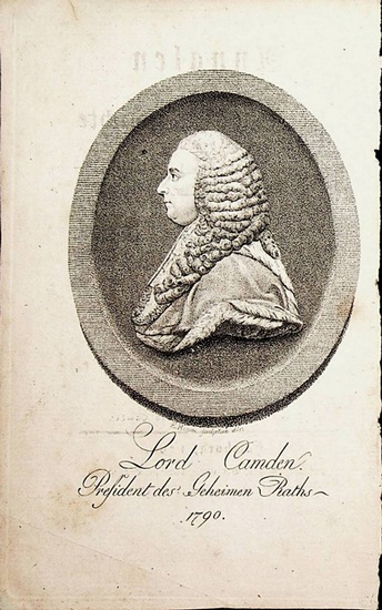 PRATT, Charles Pratt, 1st Earl Camden (1713?1794), British lawyer, Portrait original print ca. 1790 ca. 1790. original engraving, by E Henne, Format ca. 10 x 8,5 cm. Antique Print, antike Grafik.
