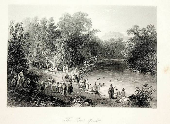 JORDAN RIVER, antique print, view ca. 1840 ca. 1840. original steel engraving by Cousen after William Henry Bartlett (1809-1854), image format ca. 12 x 17,5 cm. Antique Print, antike Grafik.