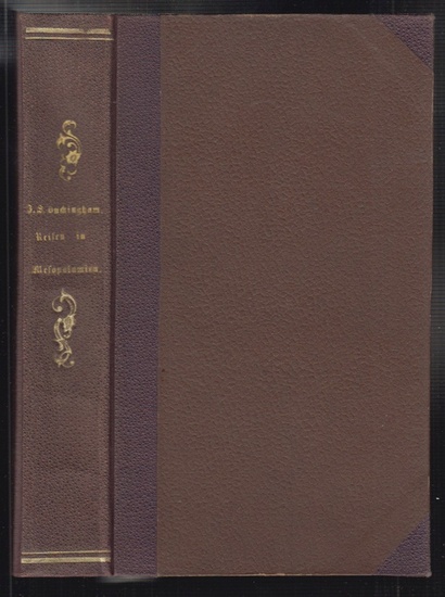 Reisen in Mesopotamien von Aleppo, über den Euphrat nach Orfah, dem Ur in Chaldäa, durch die Ebenen der Turkmanen, nach Diarbekr, in Kleinasien, von dort nach Mardin an den Grenzen der großen Wüste und an den Tigris nach Mosul und Bagdad nebst Untersuchungen über die Ruinen von Babylon, Niniveh, Arbela, Ctephison und Seleucia. Aus dem Englischen übersetzt. Berlin, Vossische Buchh. 1828. 8°. X, 605 (1) S. HLn. d. Zt. m. goldgeprägt. Rückentit. - (Magazin von merkwürdigen neuen Reisebeschreibungen, aus fremden Sprachen übersetzt. 37. Bd.). vgl. Henze I, 390 - Erste deutsche Ausgabe der ein Jahr zuvor erschienen Originalausgabe: Travels in Mesopotamia des britischen Forschungsreisenden James Silk Buckingham (1786-1855).