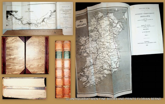 Ireland in 1834 ; a journey throughout Ireland during the spring, summer, and autumn of 1834. 2 Vols. 2 maps London, Whittaker, 1835. 3 rd edition, , contemporary half -leather binding gilt decorations on spines, green morocco spine labels, 8 vo, Vol. 1 ) 1 leaf, map of Ireland, xii, 349 pages / Vol. 2) 1 leaf, map of River Shannon, vii, 348 pages,some occasional foxing, but a good sound copy.