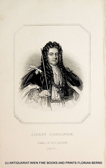Godolphin, Sidney Godolphin, 1st Earl of Godolphin (1645-1712) c. 1850. original steel engraving, sheet size approx. 17 x 10,5 cm, condition: good. Portrait Steel engraving, original antique engraving, no book.