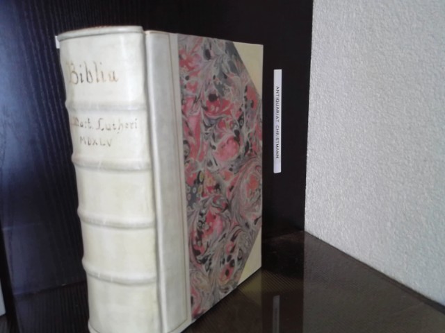 Biblia : Das ist: Die gantze Heilige Schrifft, deudsch auffs new zugericht. [Von] Mart. Luth. [Nachw.: Wilhelm Hoffmann. Faks.-Ausg. Wittemberg, Lufft, 1545] Faksimilierte Ausgabe auf Handformat verkeinert, nach einem Exemplar der Orig. -Ausgabe, Nachwort von Prof. Dr. Wilhelm Hoffmann. Stuttgart : Württembergische Bibelanst. 1967. CCCCXI Bl. : mit Abb., VII S. ; 4°, Ex-Libris auf Vorsatzblatt nachgebundene Ausgabe, , Halbleder mit Lederecken, und falschen Bünden, Exemplar in gutem Erhaltungszustand, sehr schöne Ausgabe. Religio.