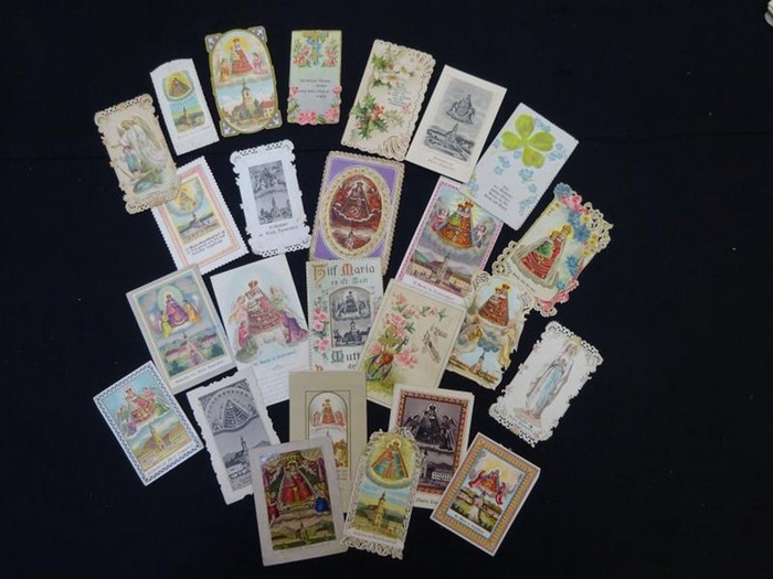 "Sammlung von 51 Andachtsbildchen ""Maria Enzersdorf""" _. In untersch. Techniken: Stahlstich, Lithographie, Chromolithographie, Holzstich etc. Darunter einige Spitzenbildchen. Ca 1880-1910. Darunter einige Dubletten.