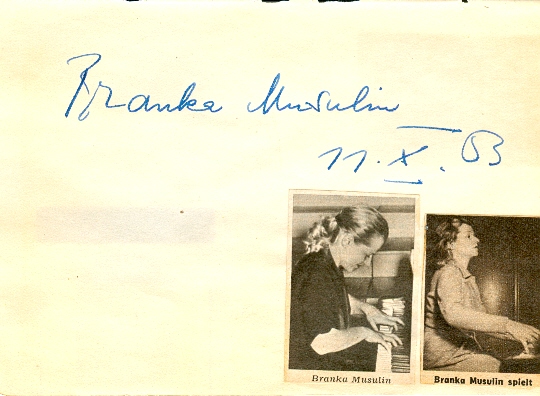 Albumblatt mit eigenh. Namenszug und 2 montierten Portraits (Zeitungsausschnitt). O. O., 11. X. 1953. 1 S. Qu.-8vo.