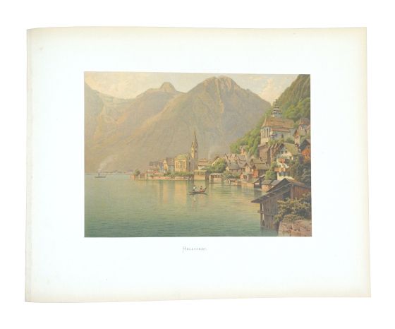 Die Salzburger Alpen. Schilderungen von Max Haushofer. Aquarelle von. C. P. C. Köhler. Darmstadt, C. Köhler?s Verlag, o. J. (1874). Qu.-Fol. Mit chromolithogr. farb. Frontispiz u. 20 chromolithogr. Farbtafeln. 3 Bll., 93 (1) S., Grüner blind- u. goldgepr. OLwd.-Bd. Erstausgabe. - Die schönen Ansichten nach Aquarellen v. C. P. C. Köhler zeigen u.a. Salzburg mit Untersberg, Mondsee mit Schafberg, Wolfgangsee mit St. Gilgen, Ischl, Traunsee mit Traunstein, Hallstadt, Grundlsee, Gosausee mit Dachstein, Werfen, Wildbad Gastein, Reichenhall, Chiemsee, Berchtesgaden, Hoher Göhl u. Königsee. - Einband etw. berieben u. bestoßen. Rückenkanten (bes. die hintere) tlw. eingerissen. Vereinzelt leicht gebräunt bzw. stockfleckig. - Nebehay/W. 308; Dreyer 107.
