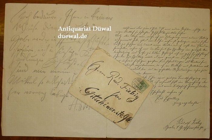 Eigenhändiger Brief m. Unterschrift "A. M.", o.D. (Juni 1903). 1 S. 4to. Mit eigenh. Briefumschlag. _. An einen Herrn Rudolf Fiebig auf dessen zweiseitiges höfliches Gesuch nach einem Empfehlungsschreiben Menzels, um eine Anstellung im Kunsthandel zu bekommen. Menzel antwortet mit Bleistift auf einer leeren Seite des Briefes kurz und knapp ohne Anrede "Ich bedaure, Ihnen in keiner Weise dienen zu können. Habe weder in IHRER Geschäftssphäre, noch in hiesigen Kunsthandlungen Einfluß." - Gefaltet. Beiliegend Kuvert, von Menzel adressiert.