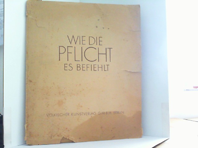 Wie die Pflicht es befiehlt. Hier mit 13 (von 20) Zeichnungen des SS Kriegeberichters Erich Palmowski. Berlin, Völkischer Kunstverlag, 1943. 4°groß, Mappe mit 4 Farb- und 9 Schwarz-weiß-Reproduktionen des SS Kriegeberichters Erich Palmowski, Vorwort Gunter d'Alquen, Format 40 x 32,3 cm - Mappe fleckig und mit Einrissen, Zeichnungen in gutem Zustand - um 1943. SH89.