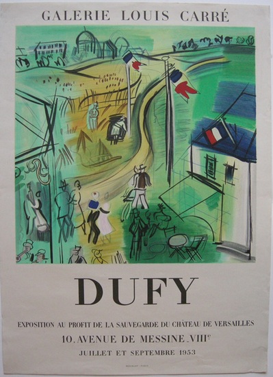 DUFY. Plakat zur Ausstellung in der Galerie Louis Carré. Exposition au Profit de la Sauvegarde du Chateau de Versailles. Juillet et Septembre 1953. _. Orig. Lithografie, gedruckt von Mourlot, Paris, 1953. 66 x 47,5 cm, obere linke und untere rechte Ecke mit leichten Knickspuren.