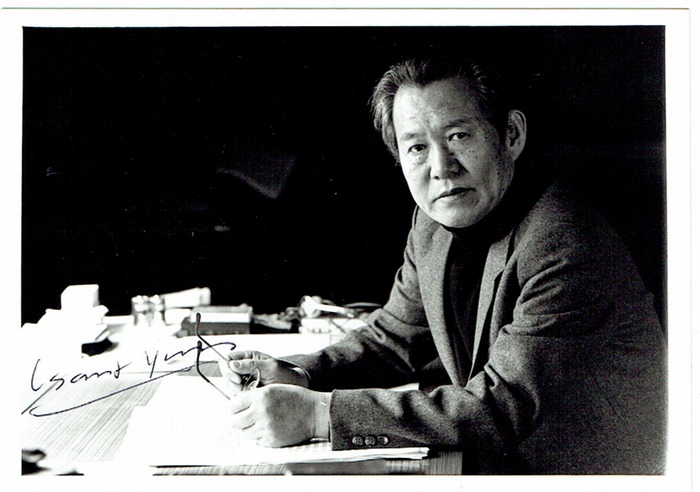 Portraitphotographie mit eigenh. Unterschrift. ohne Ort und Datum. 100 : 150 mm. Brustbild bei der Arbeit an einem Musikmanuskript.Isang Yun war ein deutscher Komponist koreanischer Abstammung, der in den späten 1960er Jahren in die Mühlen der Politik geriet. Er begehrte auf gegen die Diktatur in Südkorea ? und wurde dafür von Nordkorea gefeiert. Yun wurde unterstellt, als Spion für Nordkorea tätig zu sein und zu lebenslanger Haft verurteilt. Zwei Jahre später kam er dank internationaler Proteste frei. Zurück in Deutschland, begann Yun, die traumatischen Erlebnisse zu verarbeiten. Zu nenne ist hier insbesondere sein Cellokonzert.