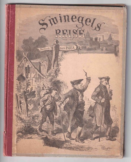 Swinegels Reise nah Paris as Friedensstifter. Eene putzige plattdütsche Historie in tein Kapitteln. Mit sine Billers uutstaffeert von Ludwig Löffler. Berlin, Hausfreund-Expedition [E.Graek], o.J.[1870]. Halbleinen, 8°, illustrierter Deckel, 106 S., 1 Bl Verlagsanzeigen, illustriert; -Rücken angeplatzt, Bindung gebrochen , Einband bestossen, Papier gebräunt.