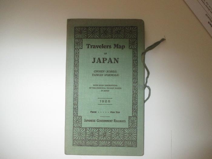 Travelers Map of Japan. Chosen (Korea) Taiwan (Formosa). Tokyo, Japanese Goverment Railway, 1925. 20,5 : 12 cm. resp. 78 : 80 cm. Large colour folding map. Original green cloth. The map shows all of Japan and its possessions. The whole East Asia area of Japane's sphere of influence. Japan, Manchurai, with insets of Tokyo, Osaka, Karafuto, Hokkaido, Taiwan. The text verso of the map is of the main sights: Tokyo, Yokohama, Kamakura, Enoshima, Yokosuka, Uraga, Hakone, Atami, Mt. Juji, Nikko, Karuizawa, Iako, Matsushima, Sendai, Hakodate, Sapporo, Kyoto, Nagoya, Kobe, Shikoku Islands, Nagasaki, Mt. Aso, Kagoshima etc. Useful and practical map of Japan.