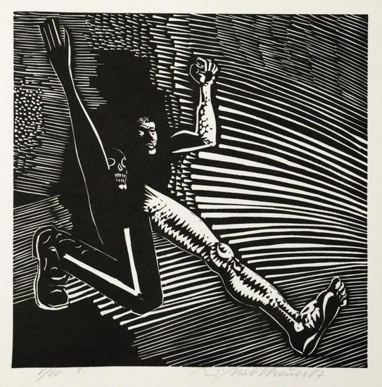 Linolstiche 1986/87. Halle, Kulturbund der DDR / Pirckheimer-Gesellschaft / Staatliche Galerie Moritzburg 1987. * Folge mit 10 signierten Original-Linolstichen von Wolfgang Mattheuer; dazu 2 Blatt Text und ein Begleitheft mit 24 Seiten. Blattgröße 40 x 32 cm. Jedes Blatt sauber hinter Passepartout montiert (50 x 40 cm). In privater Halbleinenflügelmappe (ein Flügel eingerissen). Exemplar Nr. 8/60. *** Nicht mehr bei Gleisberg und Koch. - Wolfgang Mattheuer, im vogtländischen Reichenbach geboren, studierte nach einer Lithographenlehre von 1947 bis 1951 an der Hochschule für Grafik und Buchkunst Leipzig. Von 1953 bis 1974 war er Dozent, später Professor an der HGB. Wolfgang Mattheuer gehört zu den bedeutendsten Vertretern der Leipziger Schule. - Außerordentlich seltene Graphikmappe, erschienen zum 60. Geburtstag des Künstlers. - Das Begleitheft mit einem umfangreichen Text von Ursula Mattheuer-Neustädt: "Versuch etwas über W.M. mitzuteilen und über das Bildermachen". - Enthält folgende Linolstiche: Abendsonne; Doppelkopf; Jahrhundertschritt; Blumen; Abschied; Landschaft; Überfall; Dorfrand; Größe und Elend (zu J. R. Becher); Nachtstück. - Druck der Linolstiche: Matthias Kleindienst. - Von guter Gesamterhaltung.