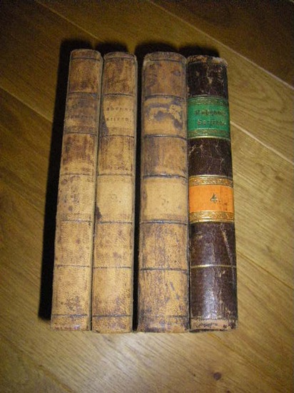 Gottlieb Wilhelm Rabeners Satyren. Erster bis vierter Theil (4 Bde. kpl) Frankfurt Leipzig, ohne Verlagsangabe, 1760. 4 Bände; 1760/1762; 212, 288, 420, 434 S.; jew. mit Titelkupfer, Holzschnittbordüren u. -vignetten; neueste Auflage; Einbände der Zeit, mit marmorierten Deckelüberzügen u. Lederecken, rundum Gelbschnitt; Bd. 4 (erschien 1762) etwas kl. u. in abweichendem Einband; Bd. 1 u. 2. mit gestempeltem Besitzerinitial (W) auf dem Titelblatt, Leder berieben, Rückentitel bei Bd. 1 - 3 kaum leserlich, Ecken etwas gestaucht, stabile Exemplare Halbleder 19,1 cm Befriedigend.