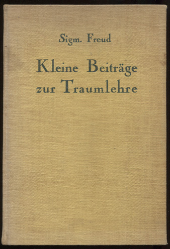 Kleine Beiträge zur Traumlehre. Leipzig/Wien/Zürich, Internationaler Psychoanalytischer Verlag, 1925. 76 Seiten, 24 x 16 cm, Leinen. 1. Auflage. Namenseintrag auf Vorsatz. Einband etwas fleckig; Einbandinnenseiten leicht blasig, innen insgesamt etwas wellig. Insgesamt noch gutes Exemplar.