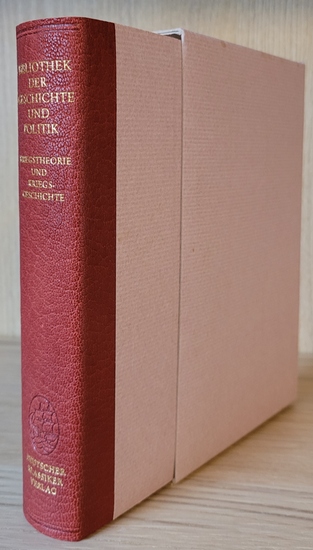 Carl von Clausewitz und Helmuth von Moltke: Kriegstheorie und Kriegsgeschichte. Herausgegeben von Reinhard Stumpf. Bibliothek der Geschichte und Politik herausgegeben von Reinhart Koselleck. Band 23. 1993. Deutscher Klassiker Verlag, Frankfurt, Erste Auflage. Reihe: Bibliothek deutscher Klassiker, Band 23. Rotes anilin-gefärbtes Radja-Ziegenleder mit Naturnarbung und Kopfgoldschnitt sowie Originalumschlag mit Lederrücken im Originalschuber. 1018 Seiten, Dünndruck. 18 : 11,5 cm.