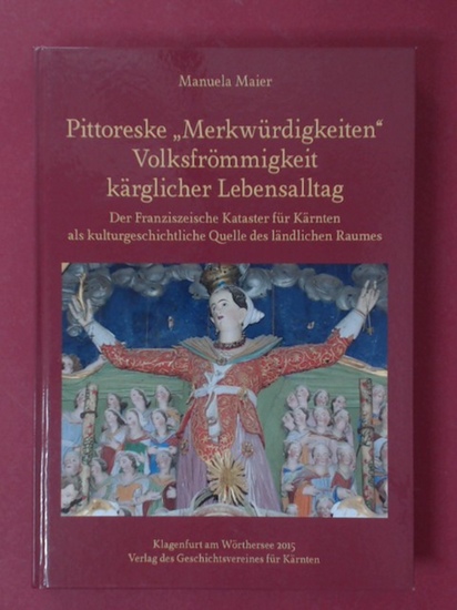 Pittoreske "Merkwürdigkeiten" - Volksfrömmigkeit - kärglicher Lebensalltag (vollständig mit CD-ROM). Der Franziszeische Kataster für Kärnten als kulturgeschichte Quelle des ländlichen Raumens. Band 42 aus der Reihe "Aus Forschung und Kunst". Klagenfurt am Wörthersee: Verlag des Geschichtsvereines für Kärnten, 2015. 328 Seiten mit zahlreichen, zum Teil farbigen Abbildungen und 1 CD-ROM in einer Tasche an der Innenseite des hinteren Einbanddeckels.. Großformat, Original-Pappband. Gutes Exemplar mit nur leichten Gebrauchsspuren. Namenseintrag auf den ersten Seiten, ansonsten textsauber. Buch aus einem Nichtraucherhaushalt.