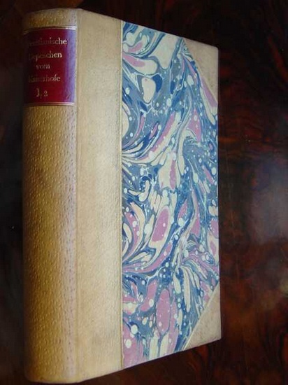 Venetianische Depeschen vom Kaiserhofe. (Dispacci di Germania). Herausgegeben von der Historischen Commission der Kaiserlichen Akademie der Wissenschaften. Bearbeitet von Dr. Alfred Francis Pribram, Prof. an der Iniversität Wien. Hier: Zweite Abtheilung. I. Band. 1657, April - 1661, Juli. Wien, In Commission bei Carl Gerolds's Sohn., 1901. Gr.8°. [16,5 : 24 cm]. XXIII/729 Seiten. Mit einem umfangreichen Register. Marmorierter Originalhalblederband mit Lederecken, goldgeprägtem Rückentitel in rotem Feld und rotem Ganzschnitt. (Rücken/Vorsatz leicht gebräunt). - Ansonsten ein sehr gut erhaltener, fleckenfreier Prachtband ohne Eintragungen. - Inhalt: 218 Depeschen (in Originalsprache: italienisch / jede Depesche mit Einführung in deutsch). Mit vielen eingedruckten Marginalien in deutsch.